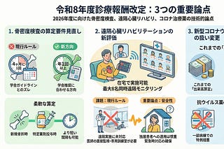 令和8年度診療報酬改定へ向けた3つの技術的論点|骨密度検査・遠隔心臓リハビリ・コロナ治療薬の扱いを解説
