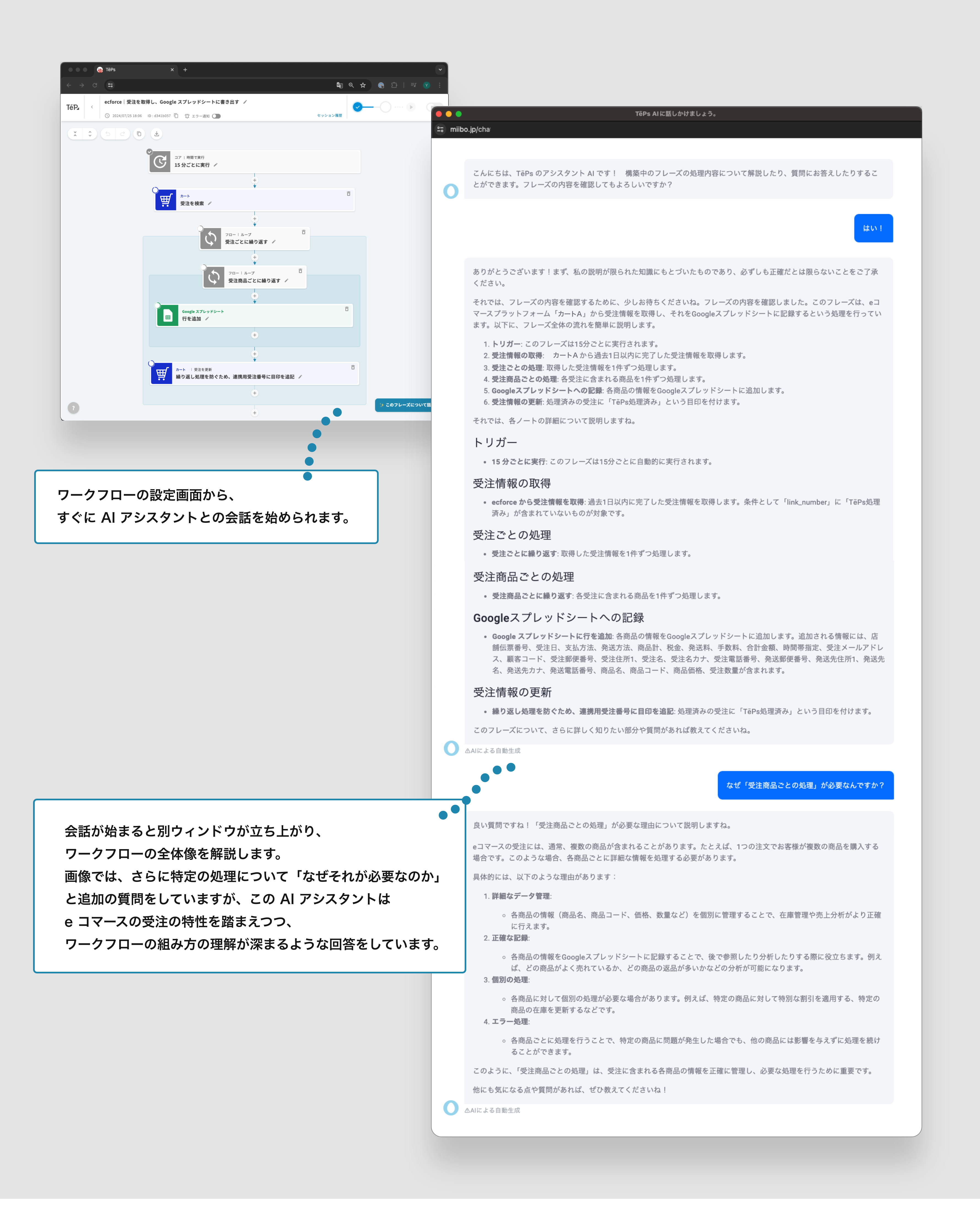 機能の詳細:AIアシスタントとの対話でワークフローを深く理解